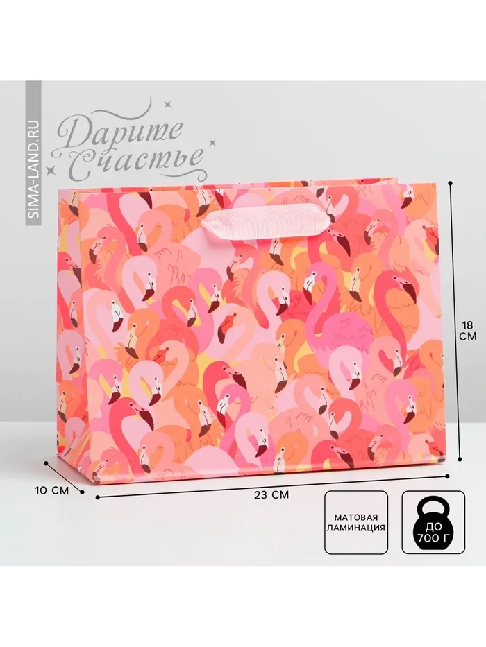 Пакет подарочный ламинированный, упаковка, «Фламинго», MS 18 х 23 х 10 см — Характеристики