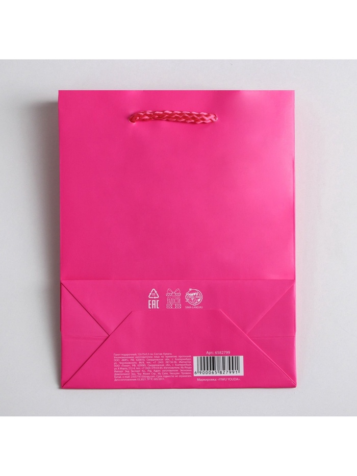 Пакет подарочный ламинированный, упаковка, «Фуксия», S 12 х 15 х 5.5 см — Характеристики