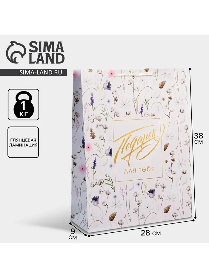Пакет подарочный ламинированный, упаковка, Gift for you, L 28 х 38 х 9 см — Характеристики