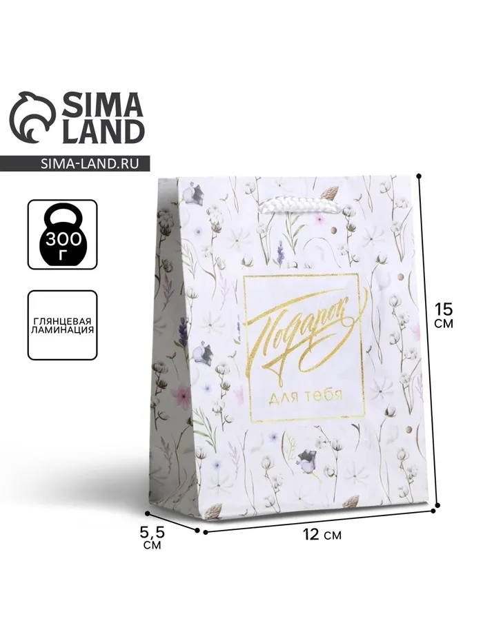Пакет подарочный ламинированный, упаковка, Gift for you, S 12 х 15 х 5.5 см — Характеристики