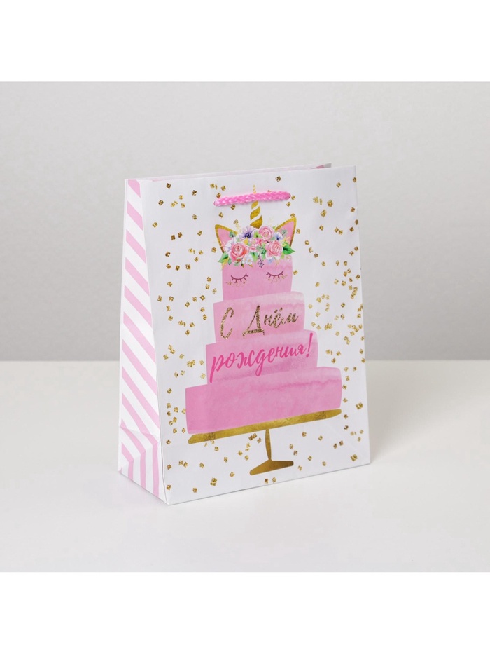 Пакет подарочный ламинированный, упаковка, Happy Birthday, MS 18 х 23 х 8 см