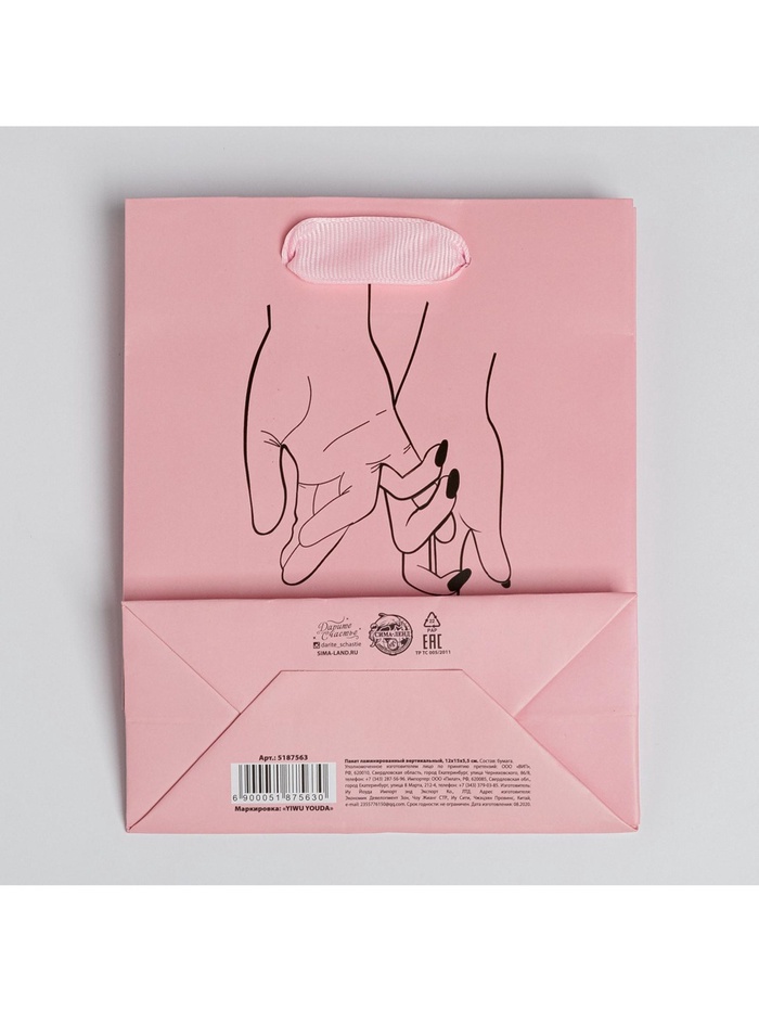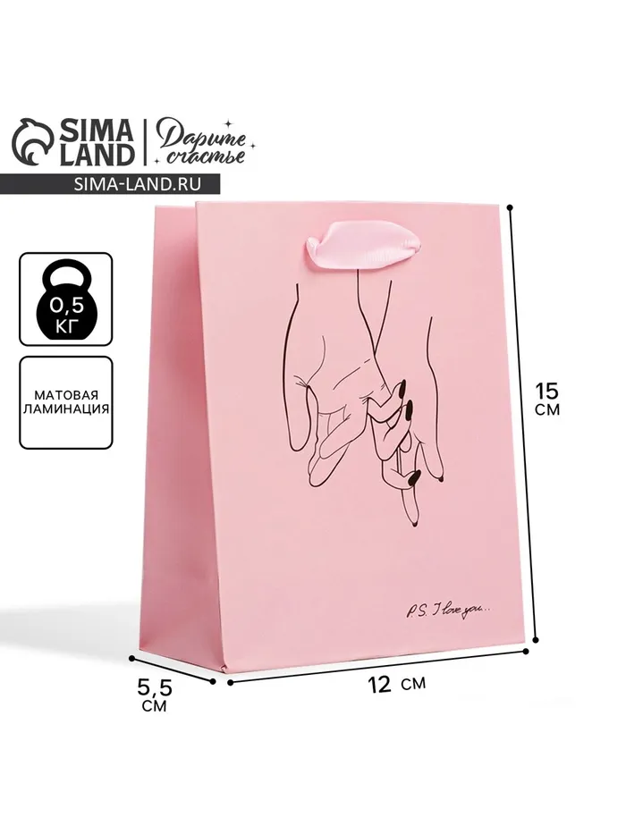 Пакет подарочный ламинированный, упаковка, I love you, S 12×15×5.5 см — Характеристики