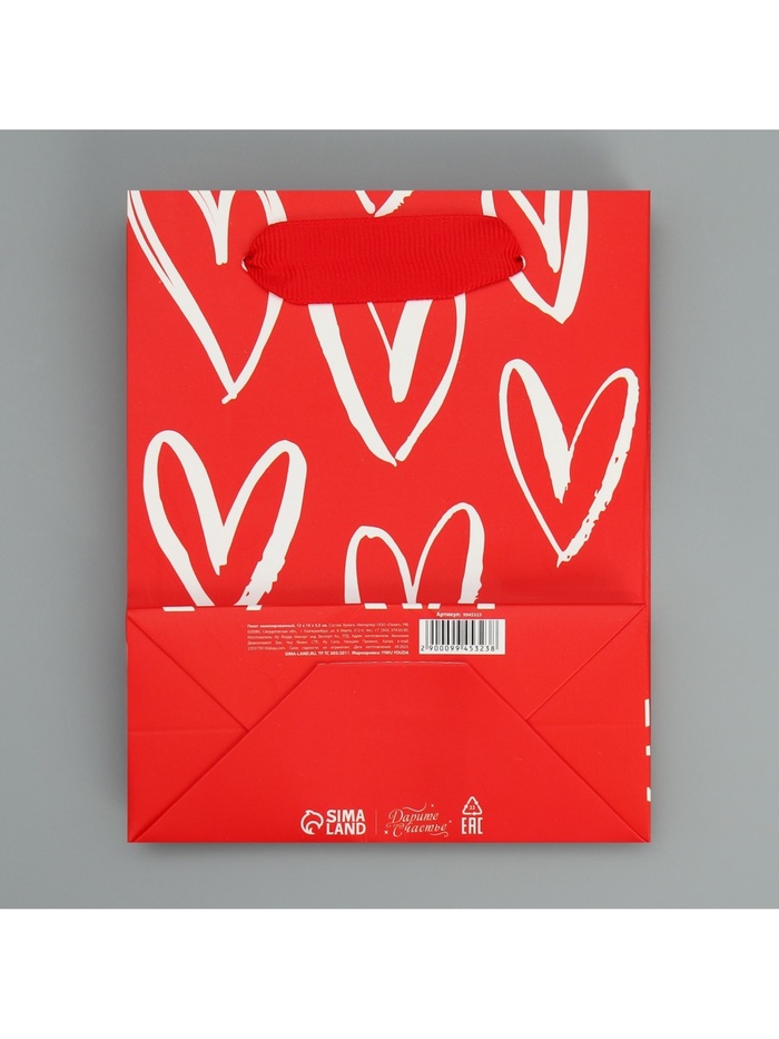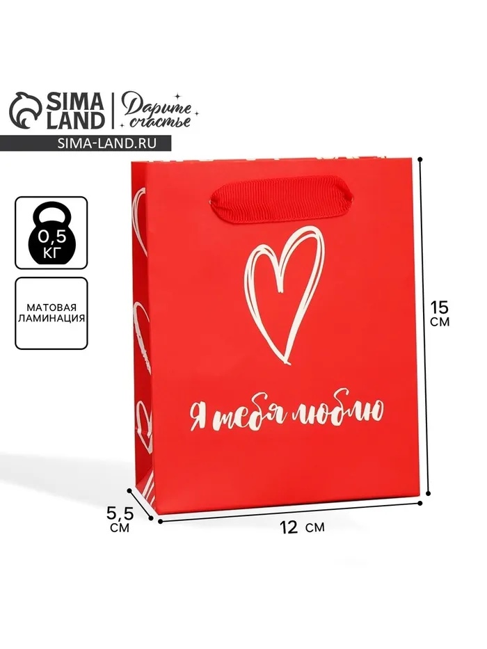 Пакет подарочный ламинированный, упаковка, «Я тебя люблю», S 12 х 15 х 5.5 см — Характеристики