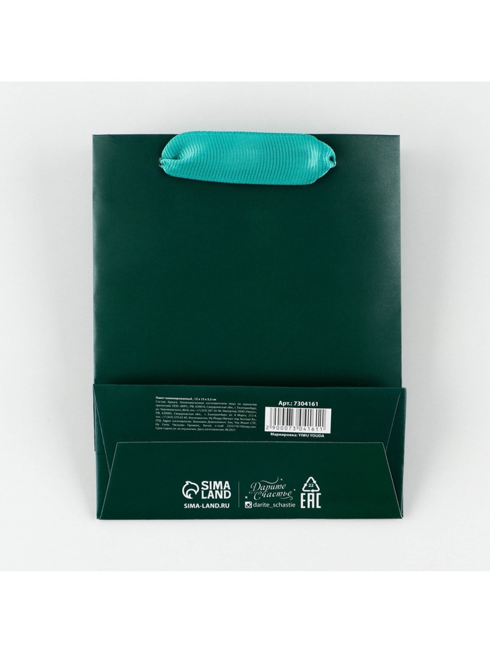 Пакет подарочный ламинированный, упаковка, «Изумрудный», S 12 х 15 х 5.5 см — Характеристики