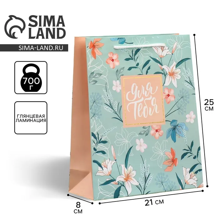 Пакет подарочный ламинированный, упаковка, Just for you, ML 21 х 25 х 8 см — Характеристики