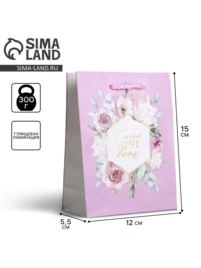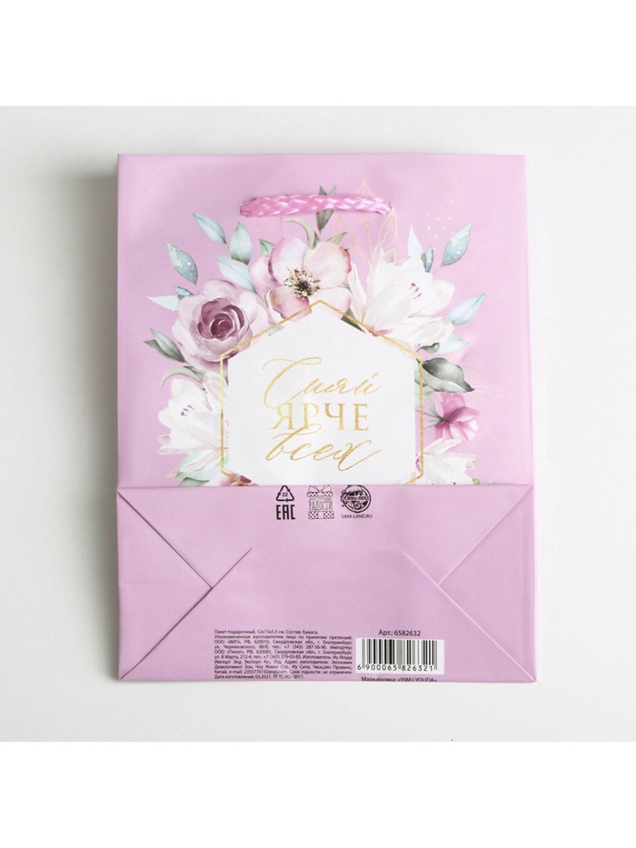 Пакет подарочный ламинированный, упаковка, Just for you, S 12 х 15 х 5.5 см — Характеристики