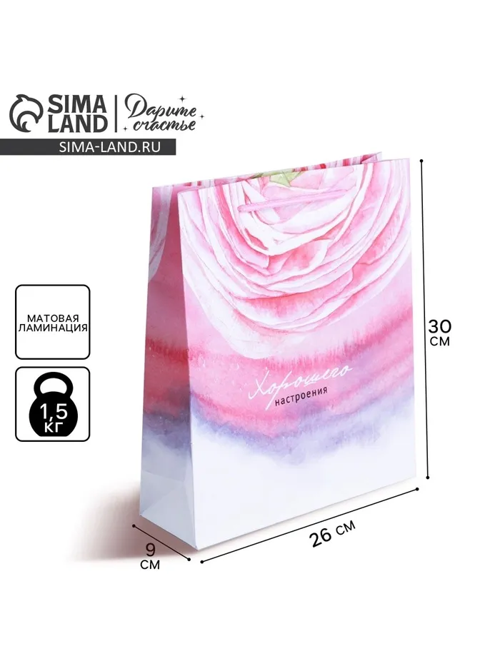 Пакет подарочный ламинированный, упаковка, «Хорошего настроения», M 25.5 х 30 х 9 см — Характеристики