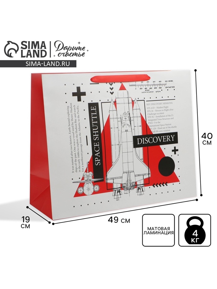 Пакет подарочный ламинированный, упаковка, «Космос: Изучай», XL 49 х 40 х 19 см — Характеристики