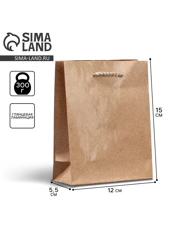 Пакет подарочный ламинированный, упаковка, «Крафт», S 12 х 15 х 5.5 см — Характеристики