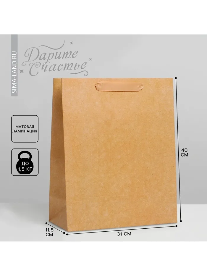 Пакет подарочный ламинированный, упаковка, «Крафтовый», L 31 х 40 х 11.5 см — Характеристики