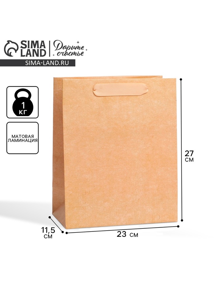 Пакет подарочный ламинированный, упаковка, «Крафтовый», ML 23 х 27 х 11.5 см — Характеристики