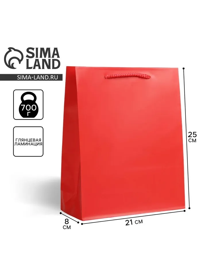 Пакет подарочный ламинированный, упаковка, «Красный», ML 21 х 25 х 8 см — Характеристики