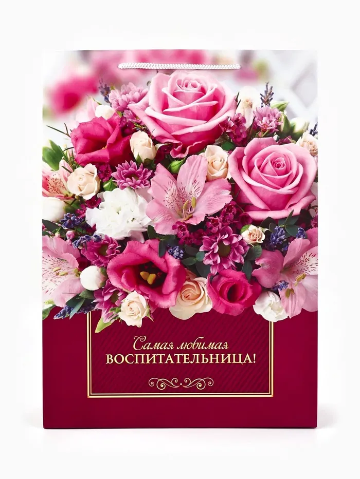 Пакет подарочный ламинированный, упаковка, «Любимая воспитательница», L 28 х 38 х 9 см — Характеристики