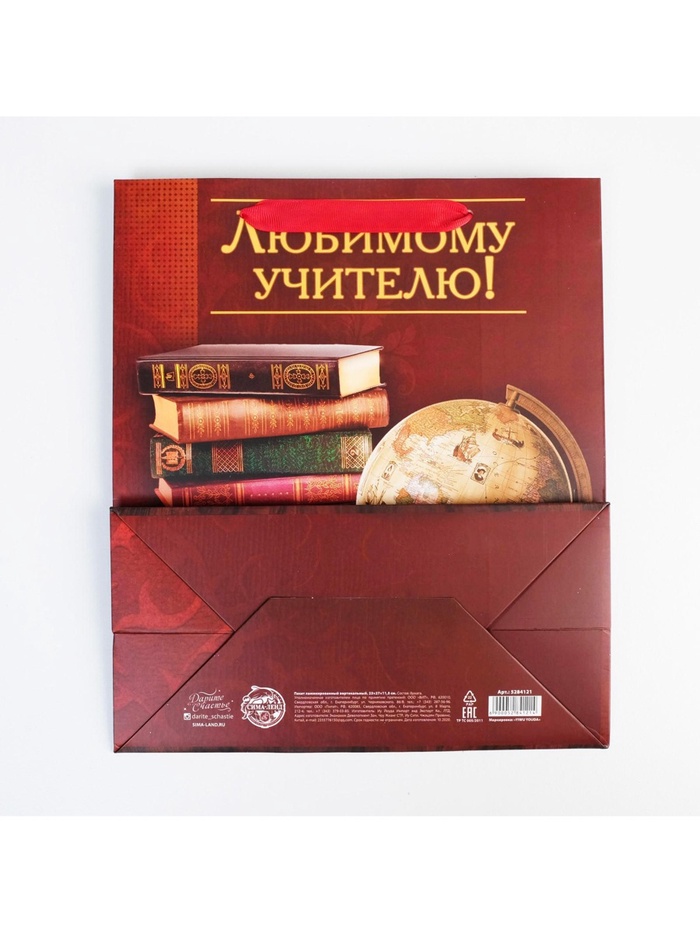 Пакет подарочный ламинированный, упаковка, «Любимому Учителю», ML 27 х 23 х 11.5 см — Характеристики