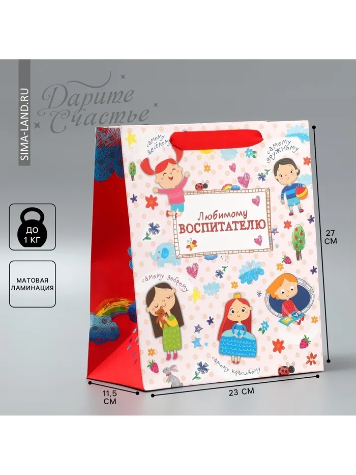 Пакет подарочный ламинированный, упаковка, «Любимому воспитателю», ML 27 х 23 х 11.5 см — Характеристики
