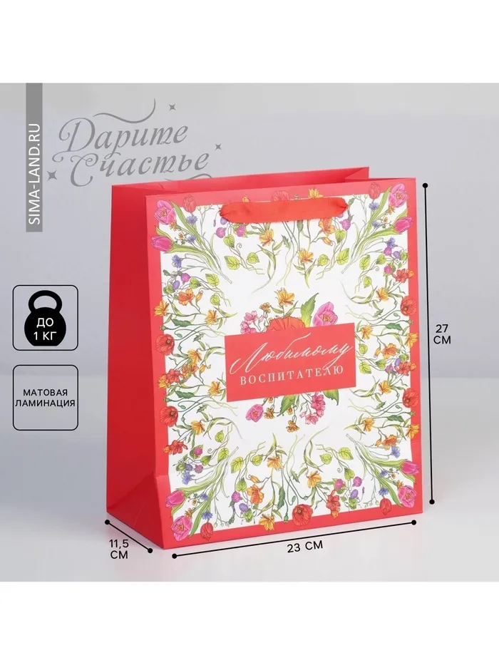Пакет подарочный ламинированный, упаковка, «Любимому воспитателю», ML 27×23×11.5 см — Характеристики