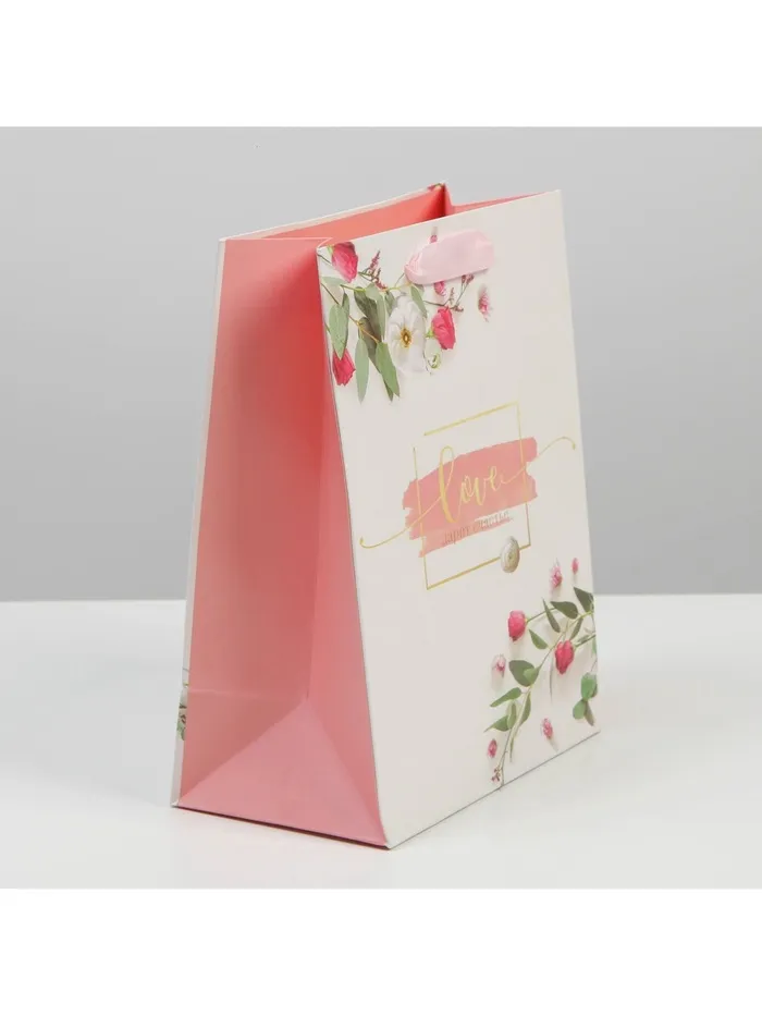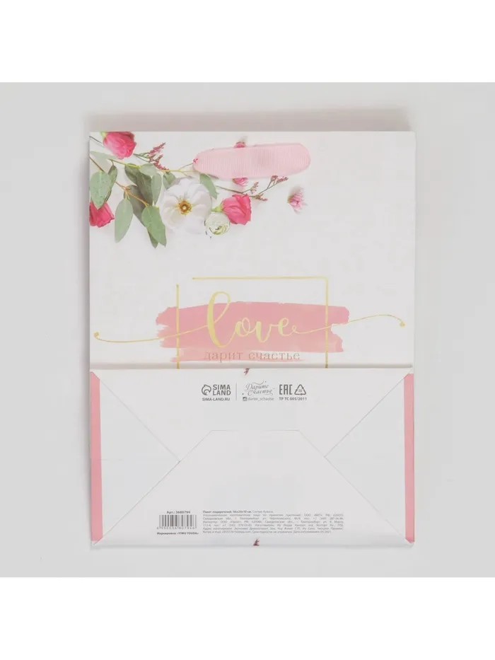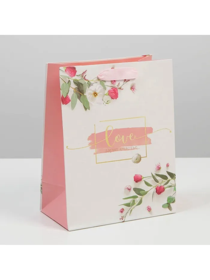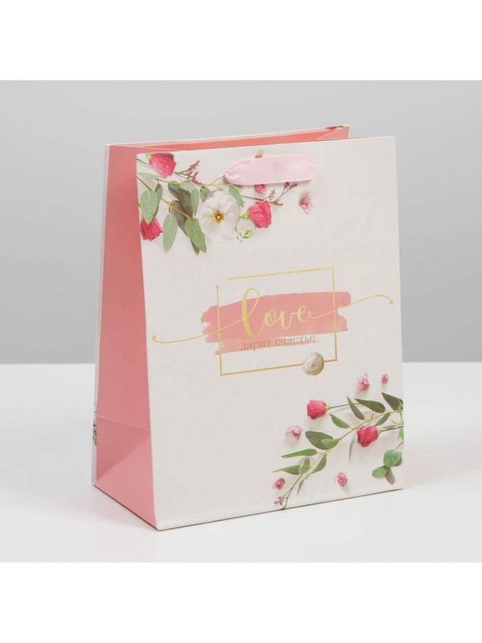 Пакет подарочный ламинированный, упаковка, «Любовь дарит счастье», MS 23 х 18 х 8 см — Характеристики