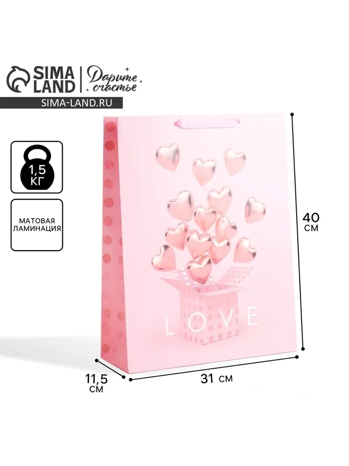 Пакет подарочный ламинированный, упаковка, «LOVE», L 31 х 40 х 11.5 см — Характеристики