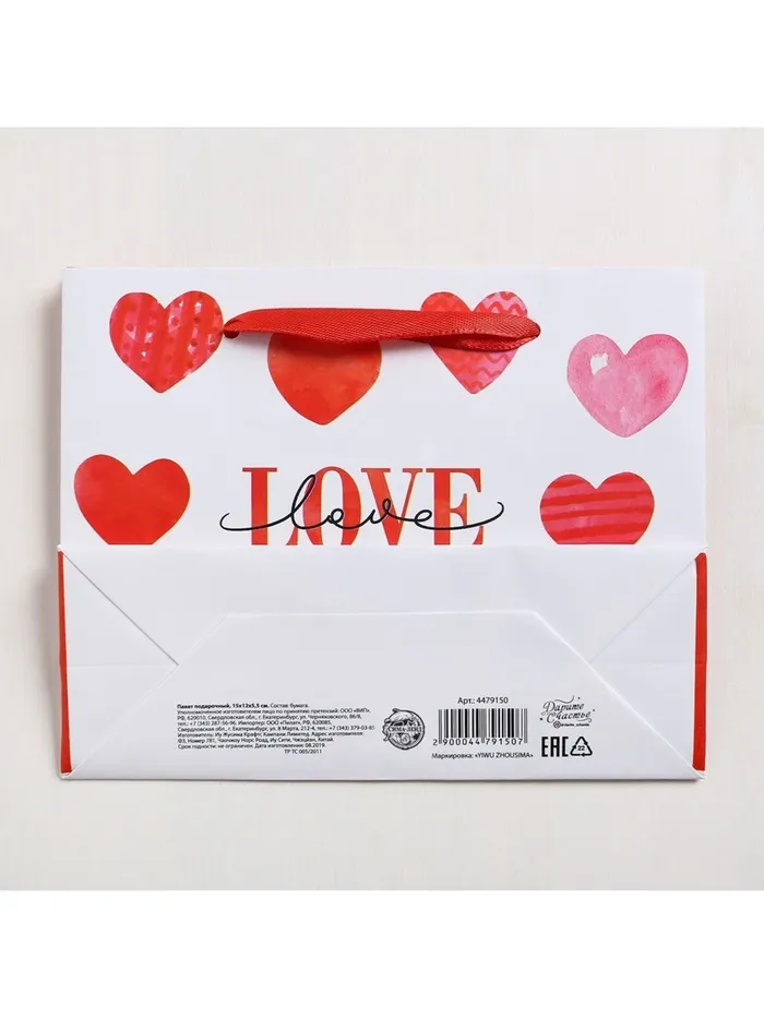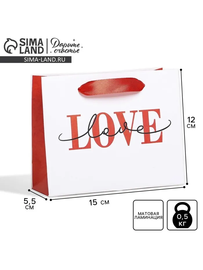 Пакет подарочный ламинированный, упаковка, LOVE, S 15 х 12 х 5.5 см — Характеристики