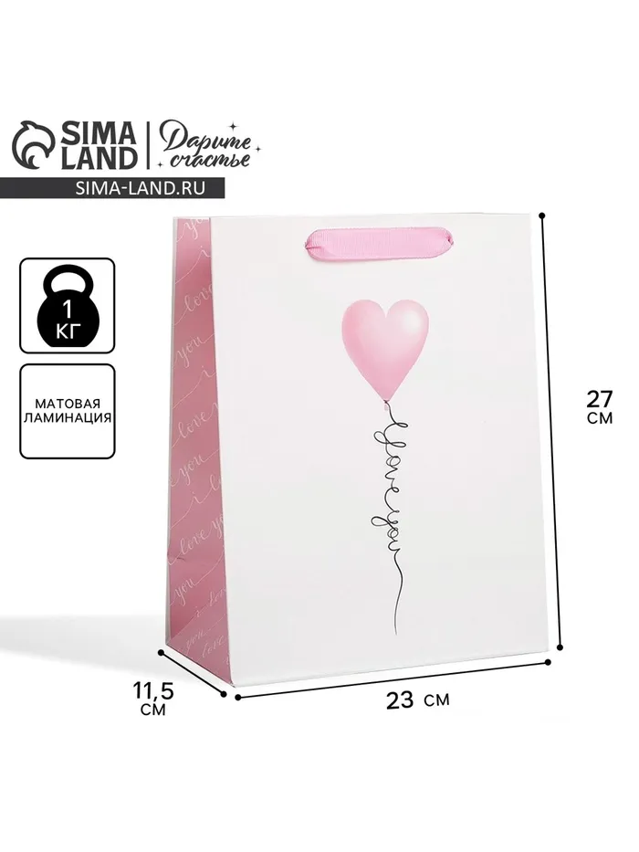 Пакет подарочный ламинированный, упаковка, Love you, ML 23 х 27 х 11.5 см — Характеристики