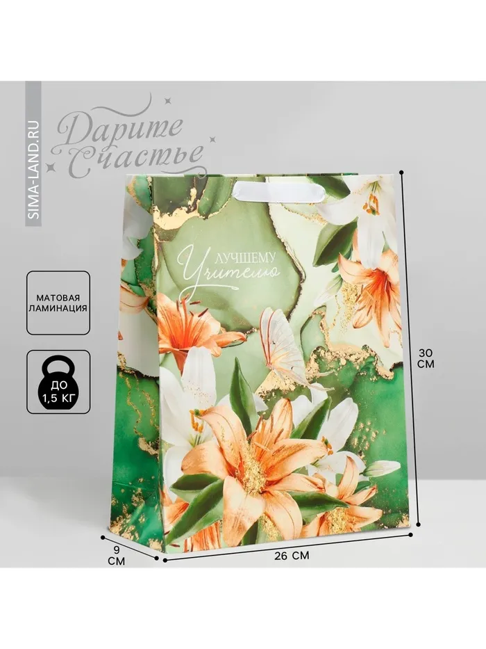 Пакет подарочный ламинированный, упаковка, «Лучшему учителю», M 30 х 26 х 9 см — Характеристики