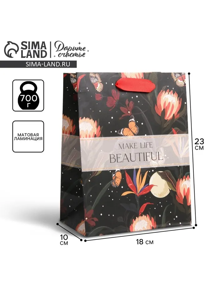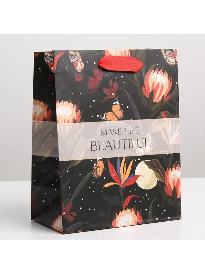 Пакет подарочный ламинированный, упаковка, «Make life», MS 18 х 23 х 10 см — Характеристики