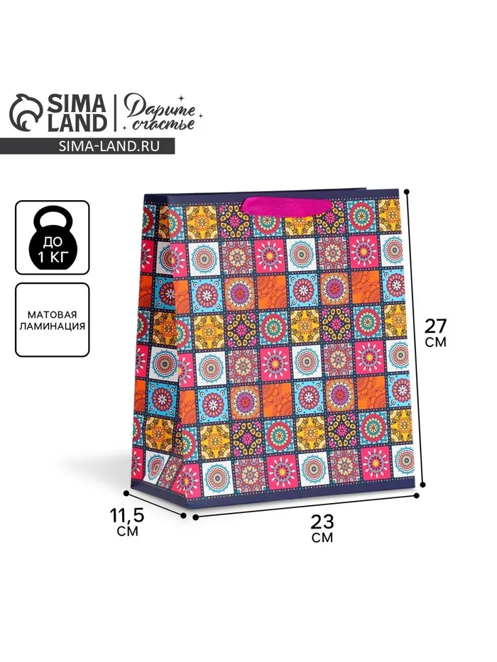 Пакет подарочный ламинированный, упаковка, «Мозайка», ML 23 х 27 х 11.5 см — Характеристики