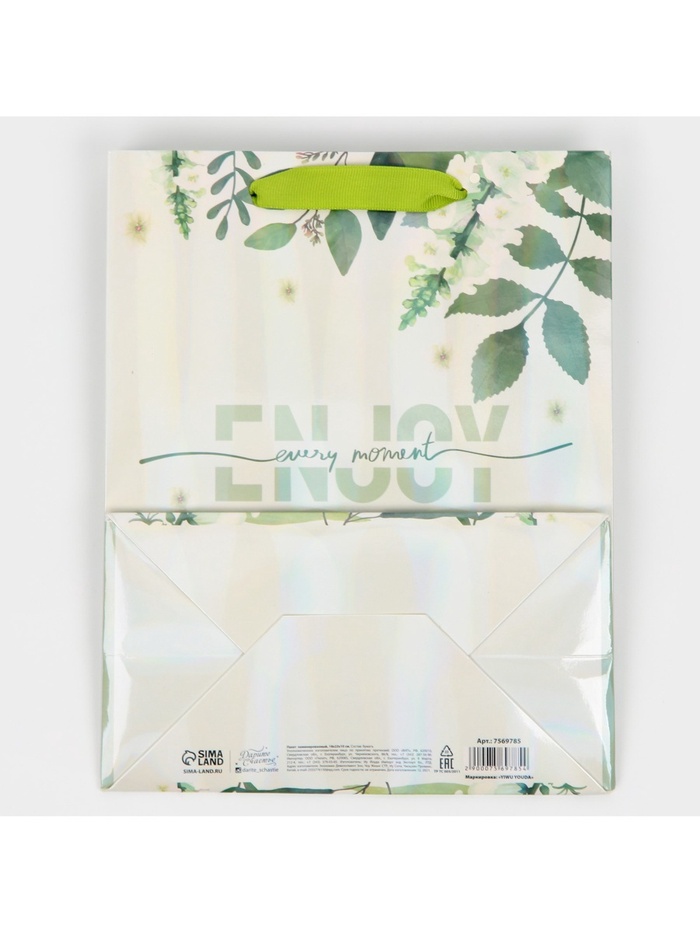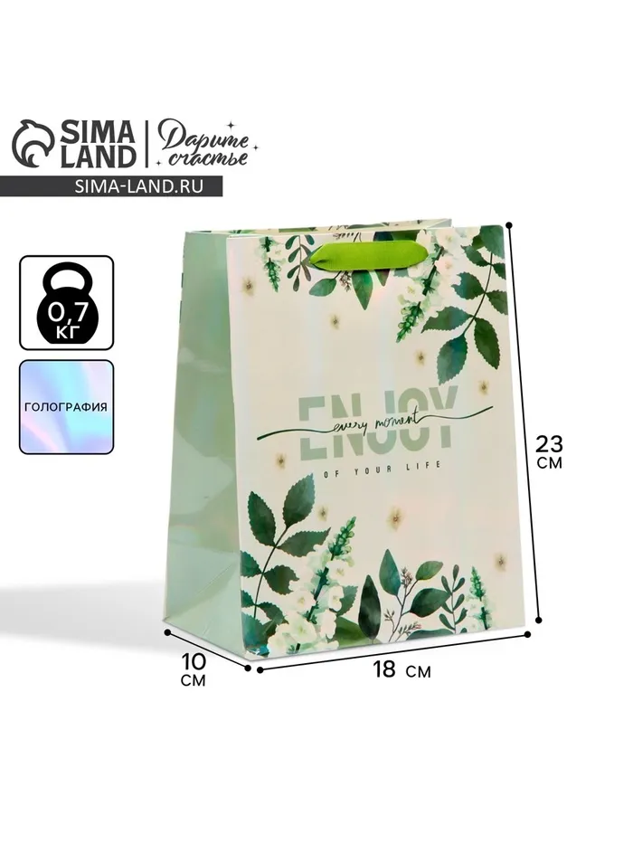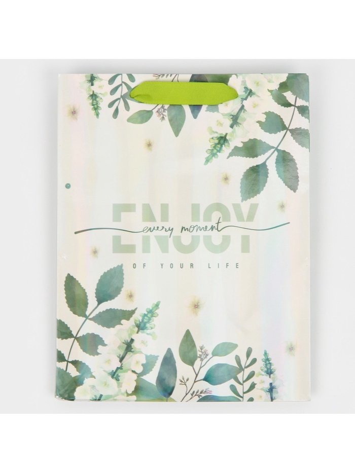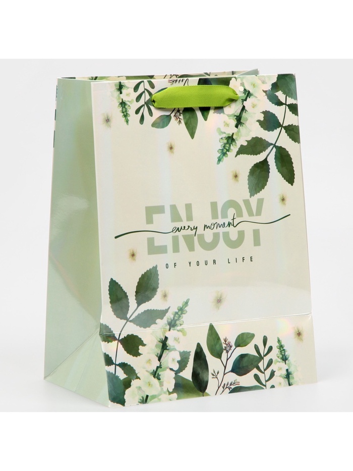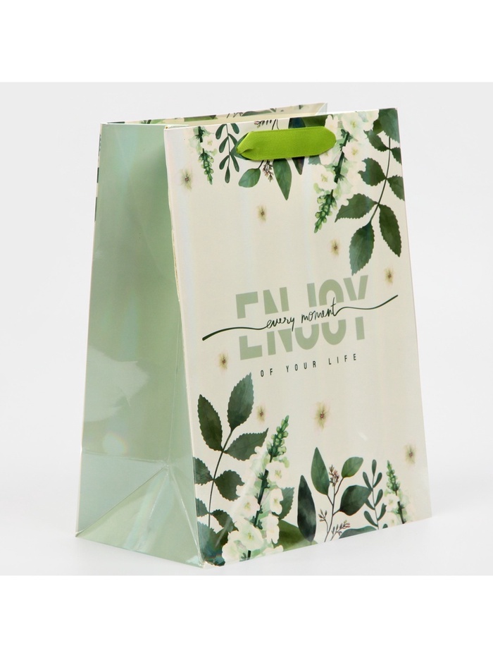 Пакет подарочный ламинированный, упаковка, «Наслаждайся моментом», радужная голография, MS 18 х 23 х 10 см — Характеристики