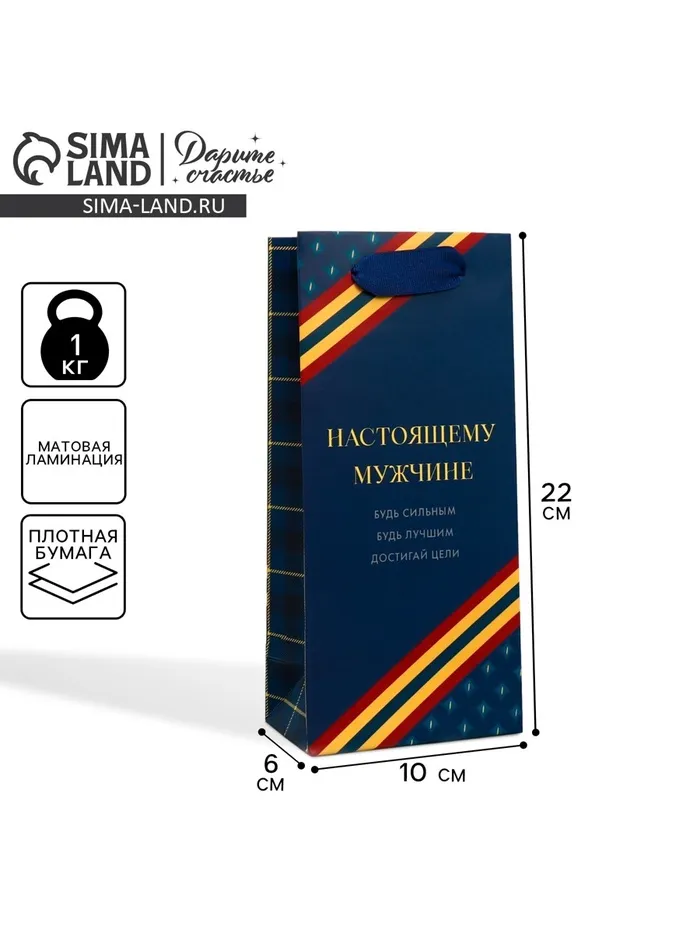 Пакет подарочный ламинированный, упаковка, «Настоящему мужчине», 10 х 22 х 6 см — Характеристики