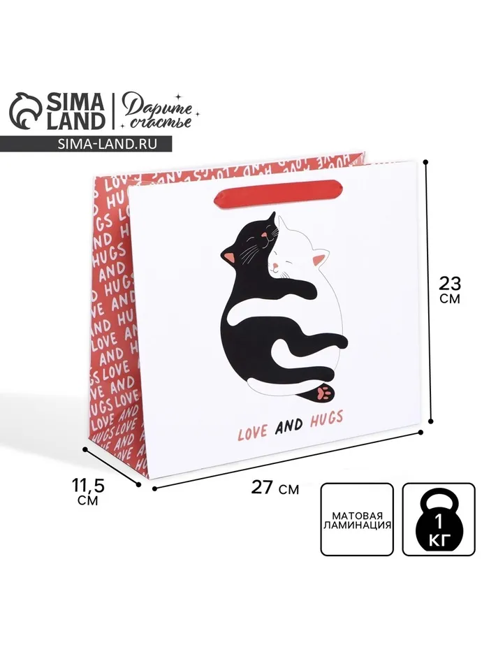 Пакет подарочный ламинированный, упаковка, «Обнимашки», ML 23 х 27 х 11.5 см — Характеристики