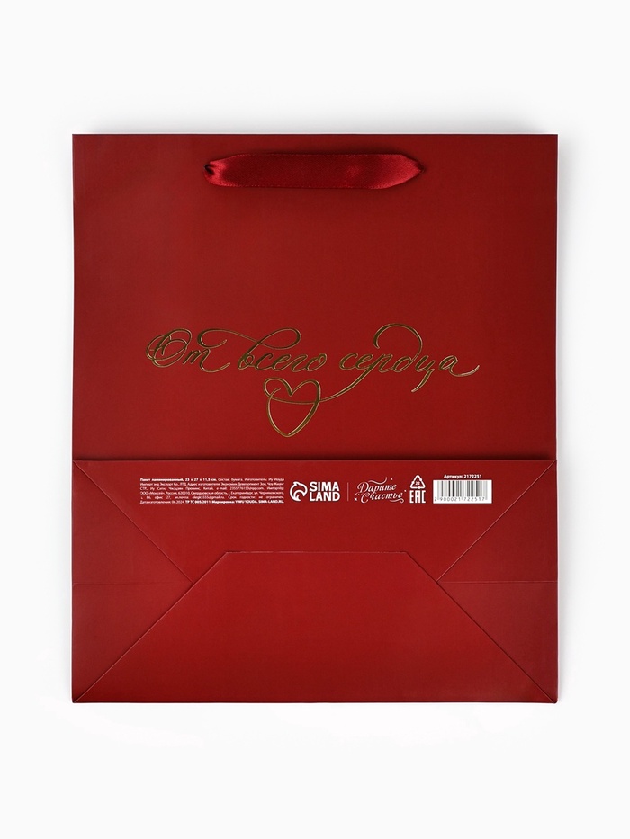 Пакет подарочный ламинированный, упаковка, «От всего сердца», ML 23 х 27 х 11.5 см — Характеристики
