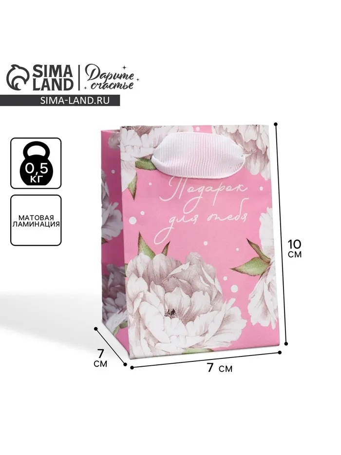 Пакет подарочный ламинированный, упаковка, «Пионы», 7 х 10 х 7 см — Характеристики