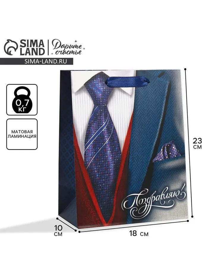 Пакет подарочный ламинированный, упаковка, «Поздравляю!», 18 х 23 х 8 см — Характеристики