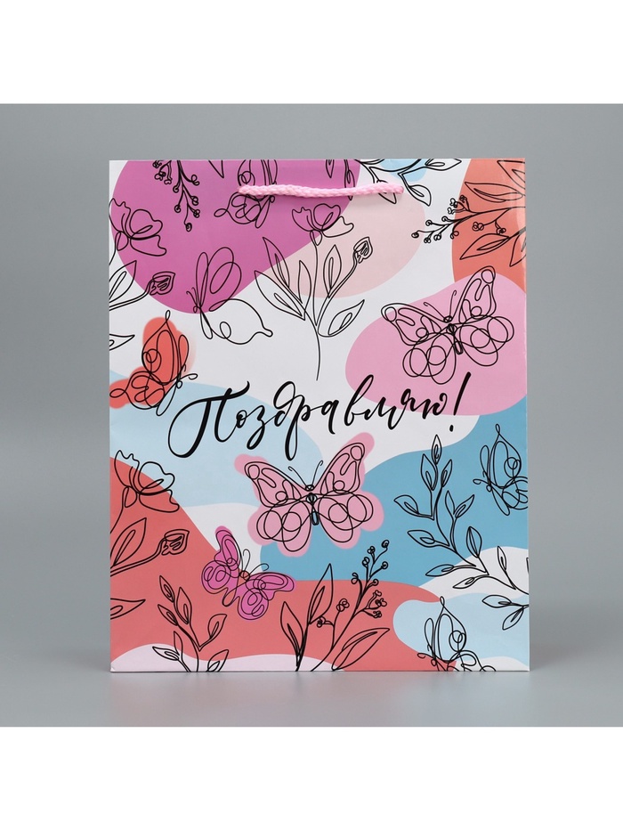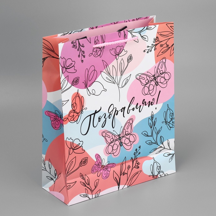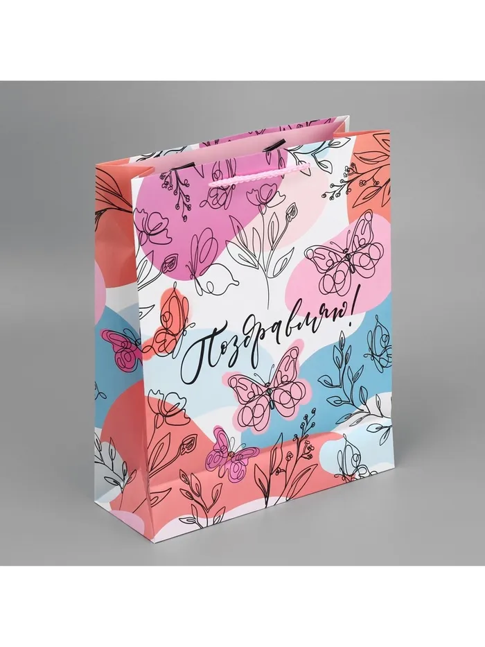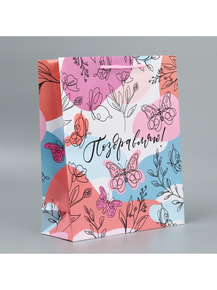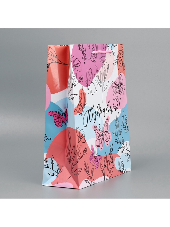 Пакет подарочный ламинированный, упаковка, «Поздравляю!», M 24 х 29 х 9 см — Характеристики