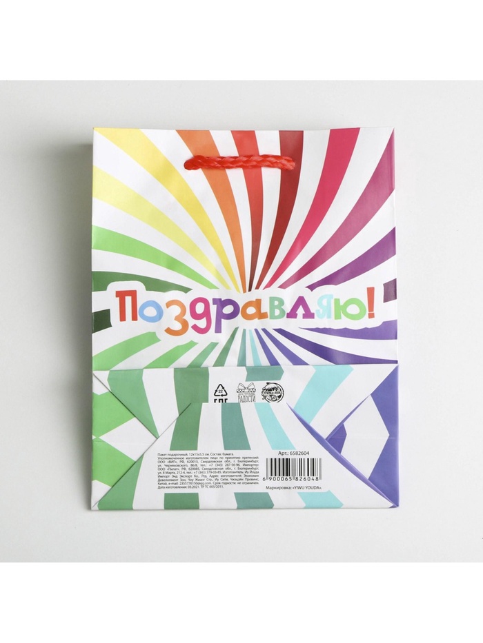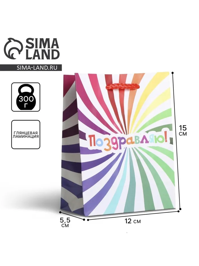 Пакет подарочный ламинированный, упаковка, «Поздравляю», S 12 х 15 х 5.5 см — Характеристики