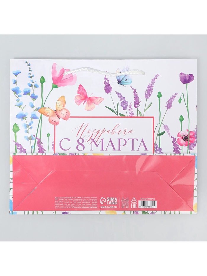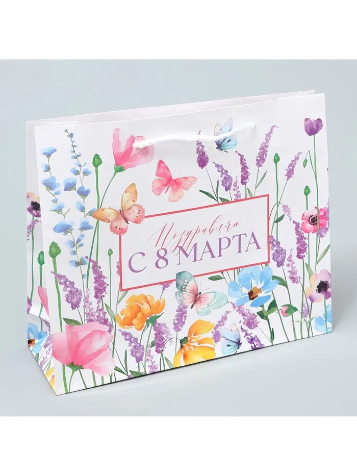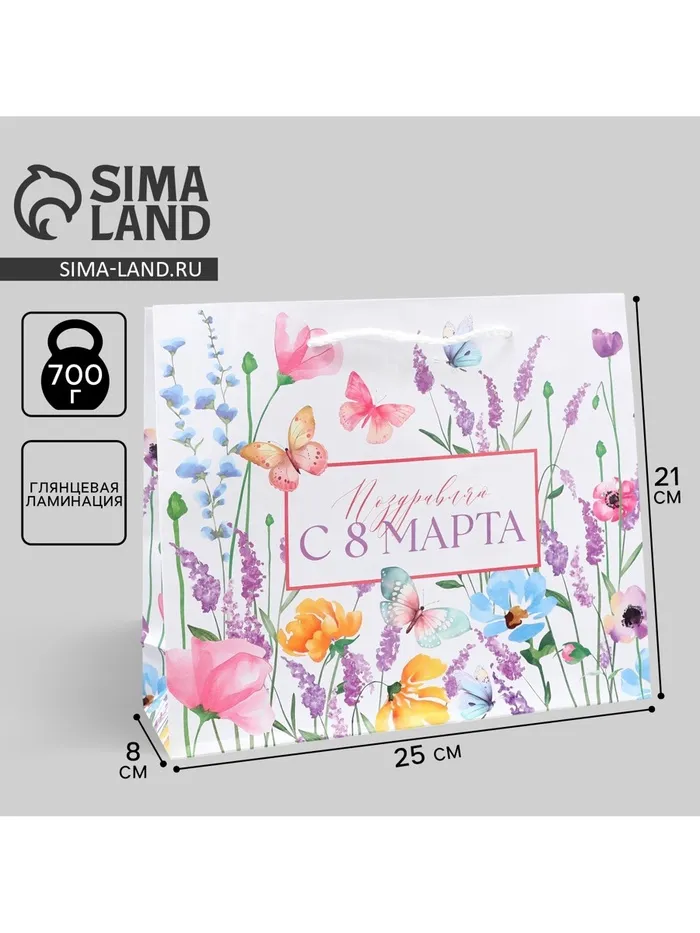 Пакет подарочный ламинированный, упаковка, «Поздравляю с 8 марта», ML 25 х 21 х 8 см — Характеристики