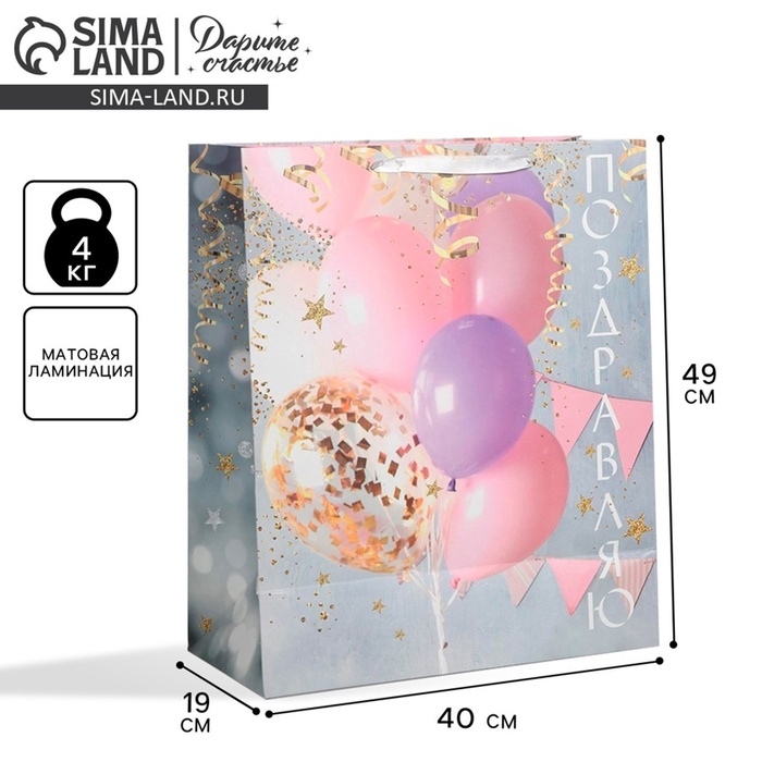 Пакет подарочный ламинированный, упаковка, «Поздравляю!», XL 49 х 40 х 19 см — Характеристики