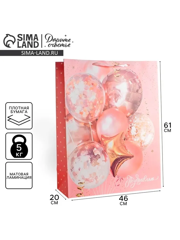 Пакет подарочный ламинированный, упаковка, «Поздравляю!», XXL 61 х 46 х 20 см — Характеристики