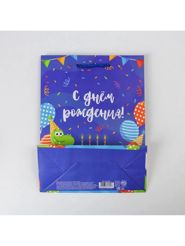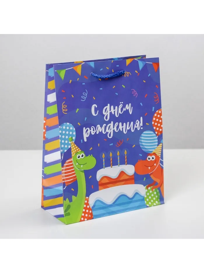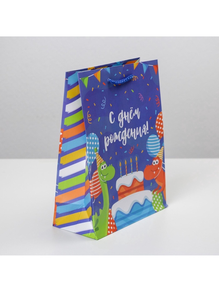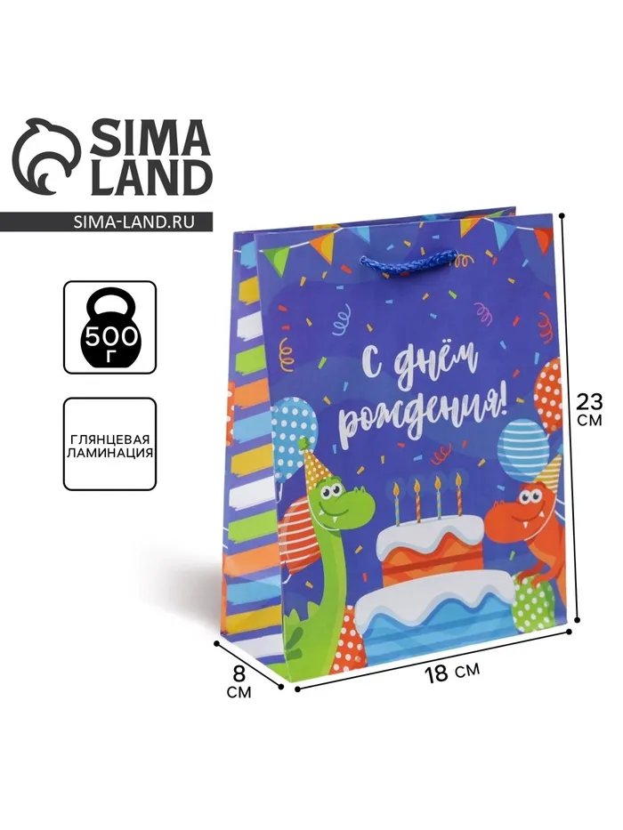 Пакет подарочный ламинированный, упаковка, «Праздничные динозаврики», MS 18 х 23 х 8 см — Характеристики