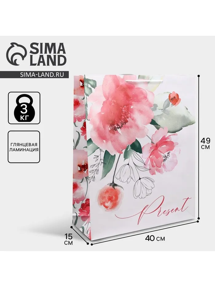 Пакет подарочный ламинированный, упаковка, Present, 40 х 49 х 15 см — Характеристики