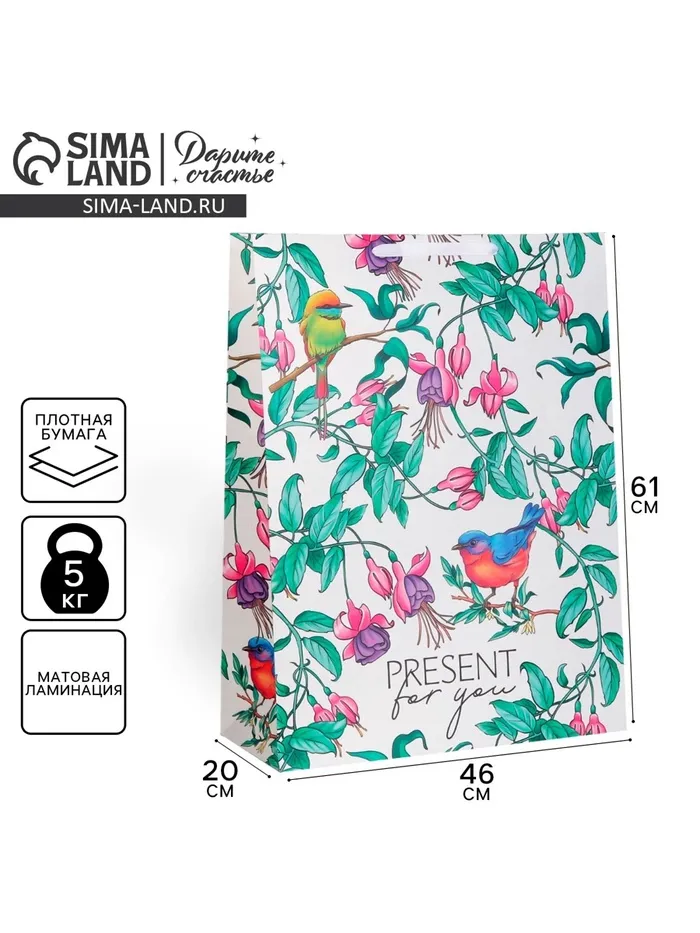 Пакет подарочный ламинированный, упаковка, «Present for you», 61 х 46 х 20 см — Характеристики
