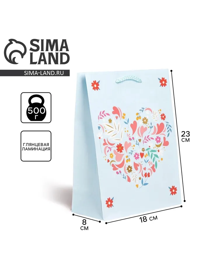 Пакет подарочный ламинированный, упаковка, Present for you, MS 18 х 23 х 8 см — Характеристики