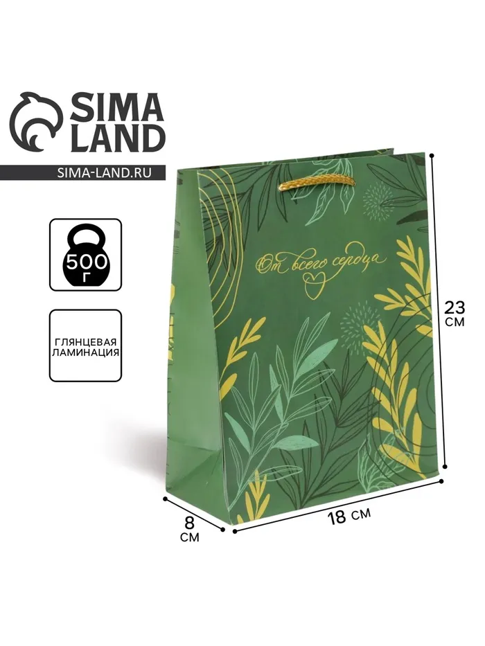 Пакет подарочный ламинированный, упаковка, Present with love, MS 18 х 23 х 8 см — Характеристики
