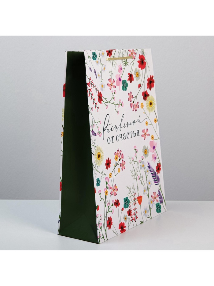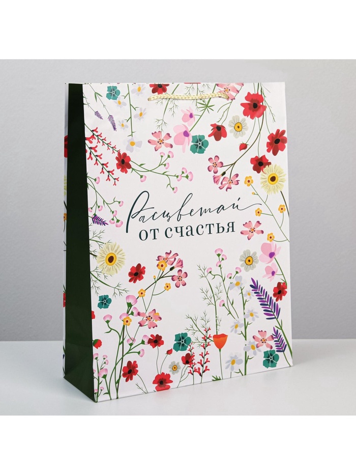 Пакет подарочный ламинированный, упаковка, «Расцветай от счастья», L 28 х 38 х 9 см — Характеристики