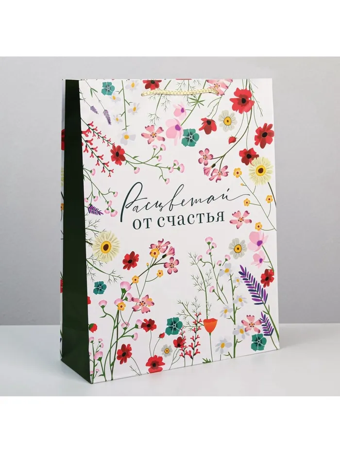 Пакет подарочный ламинированный, упаковка, «Расцветай от счастья», L 28 х 38 х 9 см — Характеристики