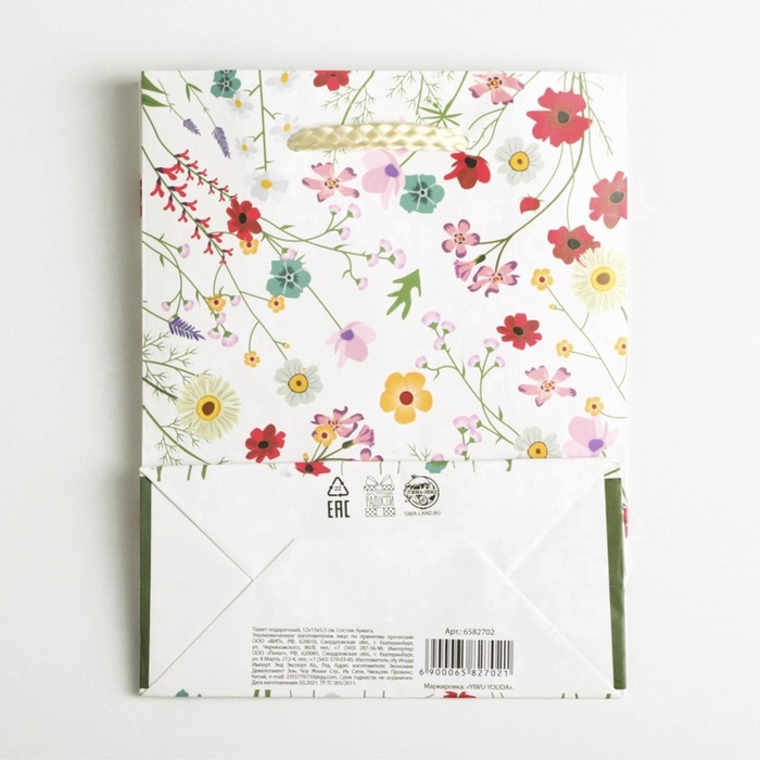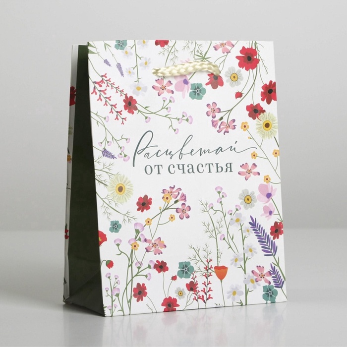 Пакет подарочный ламинированный, упаковка, «Расцветай от счастья», S 12 х 15 х 5.5 см — Характеристики