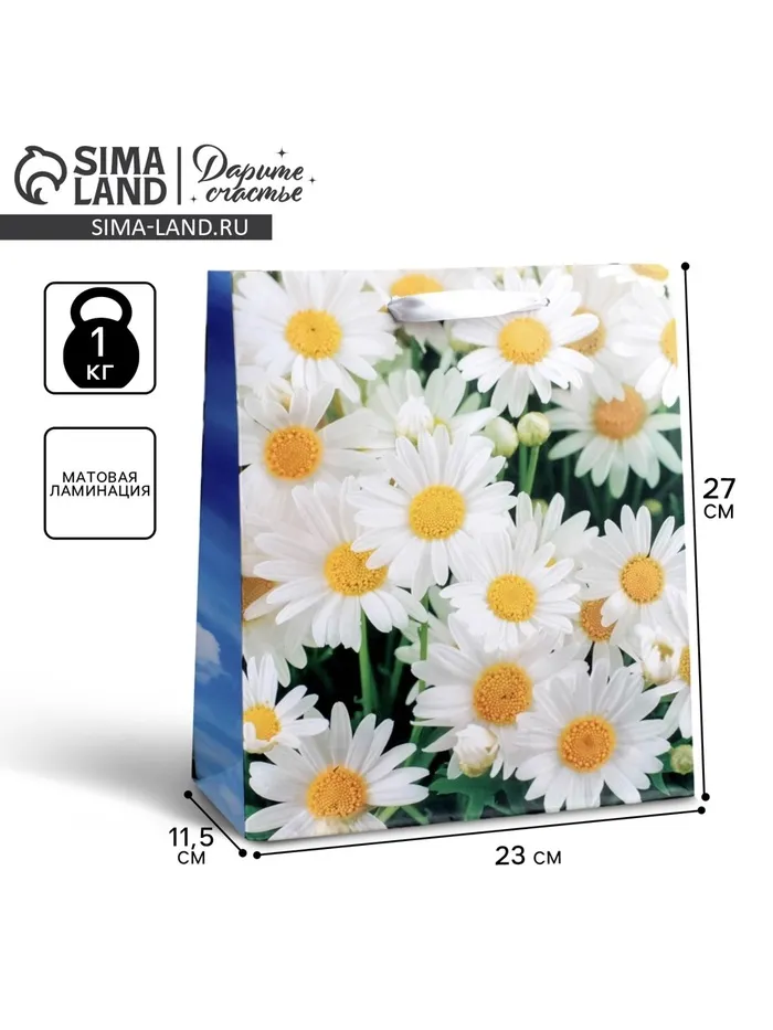 Пакет подарочный ламинированный, упаковка, «Ромашки полевые», ML 23 х 27 х 11.5 см — Характеристики