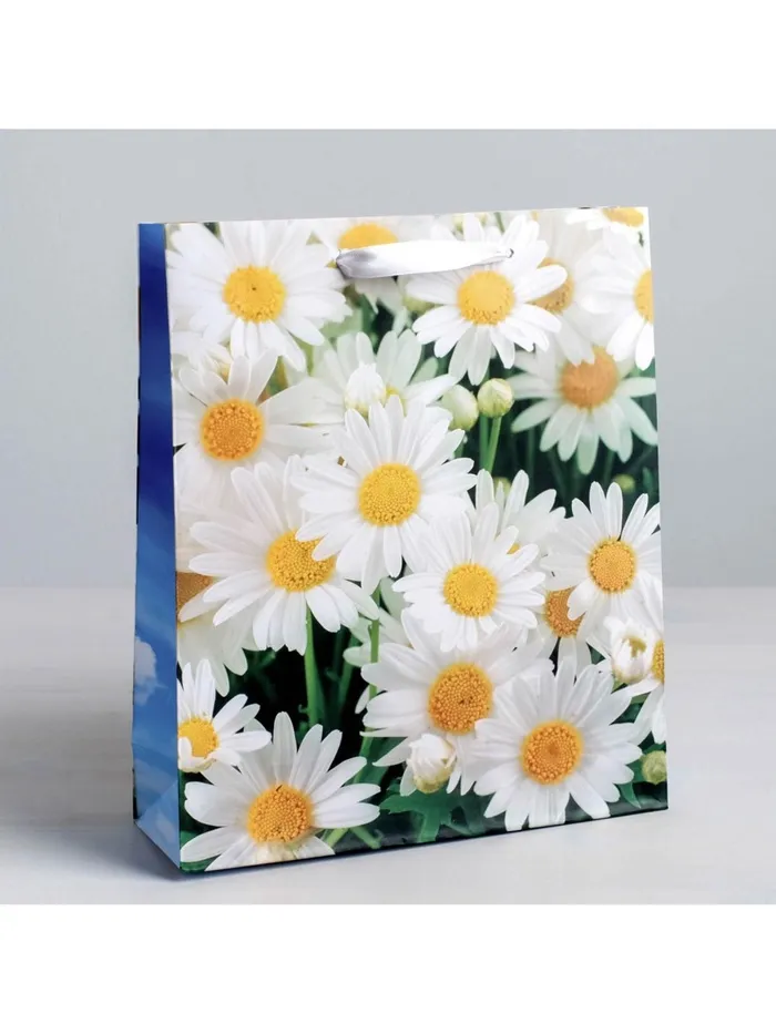 Пакет подарочный ламинированный, упаковка, «Ромашки полевые», ML 23 х 27 х 11.5 см