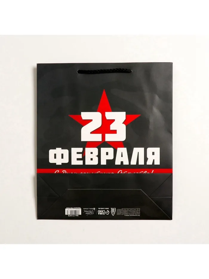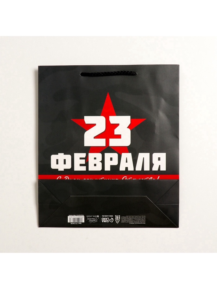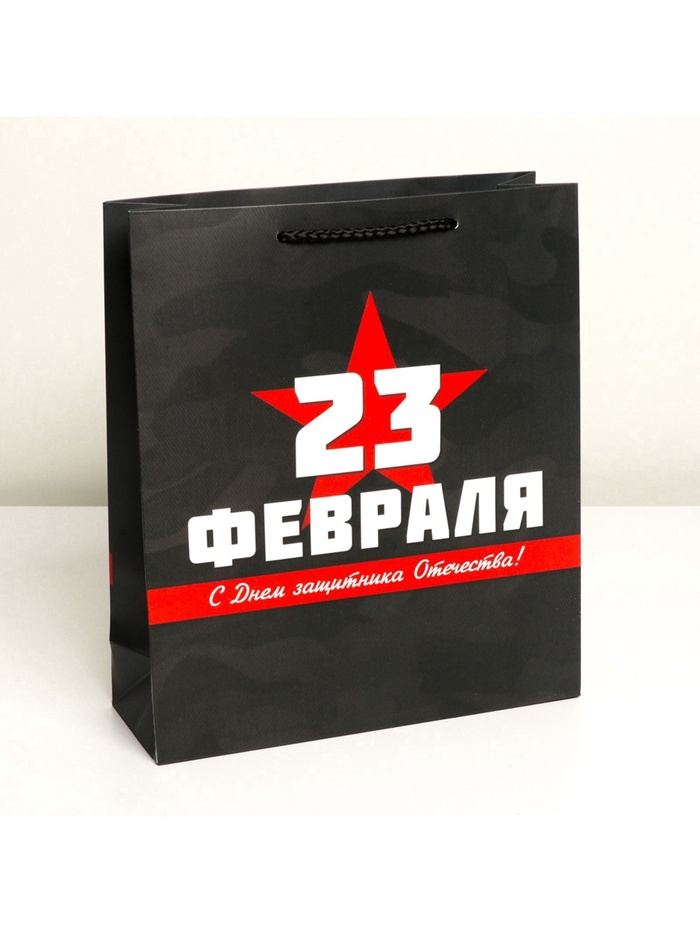 Пакет подарочный ламинированный, упаковка, «С 23 февраля», M 26×30×9 см — Характеристики