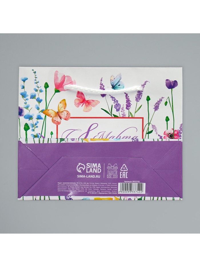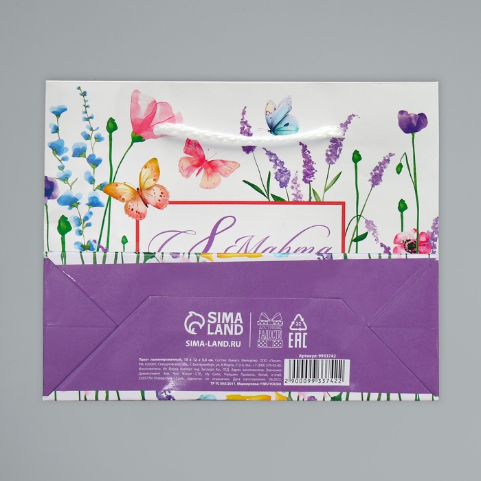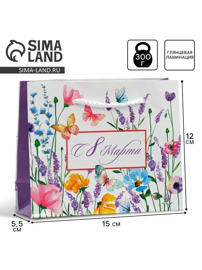 Пакет подарочный ламинированный, упаковка, «С 8 марта», S 15 х 12 х 5.5 см — Характеристики